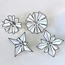 令和3年からの中学1年用の美術の教科書に記載された作り方になります。カットは本当にシンプルですが、よく切れるクラフト用のハサミが必要となります。紙は上質紙、タント紙、マーメイド紙などを用いています。