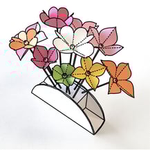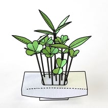 新緑の折花は紙を4つ折りにしてからカットしています。(クローバーはポピー折り)これも本当にシンプルですが、生き生きとした緑のアレンジができます。